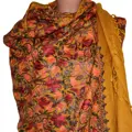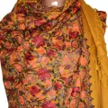 Exkluzívny ručne tkaný kašmírsky šál z jemnej vlny a hodvábu. Zdobený po okraji a na koncoch kvalitnou výšivkou s ornamentálnym vzorom v rôznych odtieňoch farieb. Stred šálu je bez vyšívaného vzoru.